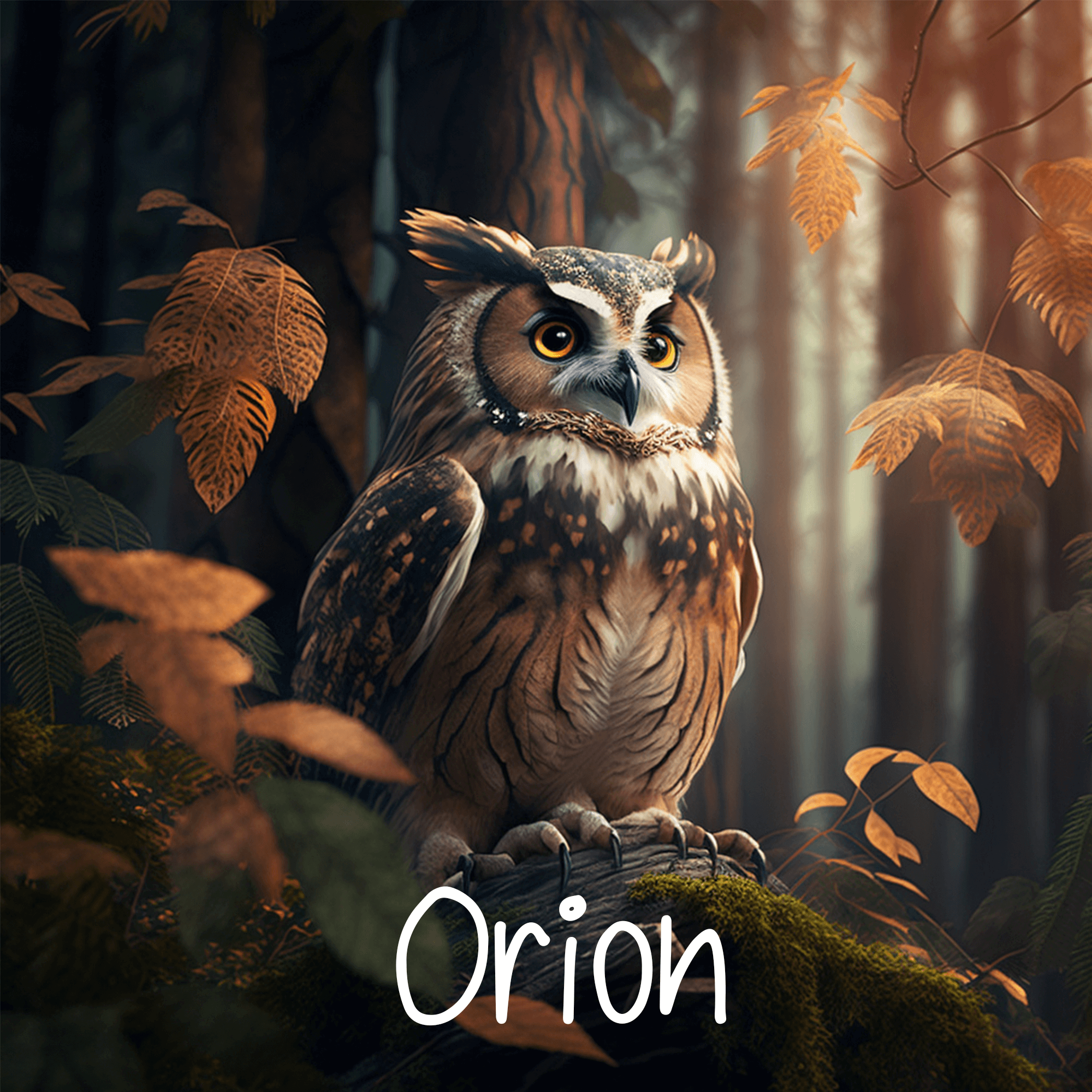 Orion, the father, is a wise and brave owl, known for his hunting and flying skills. He protects his family and taught his children about surviving in the forest and how to pay attention to their surroundings. He prompted them to be brave, teaching them how to fly and explore the world, being a role model for his family.